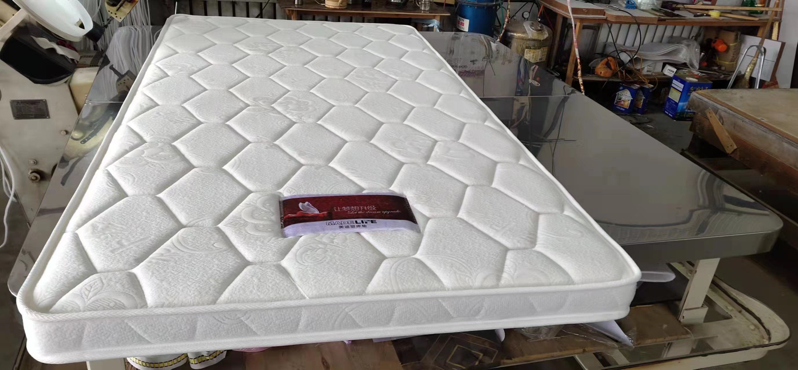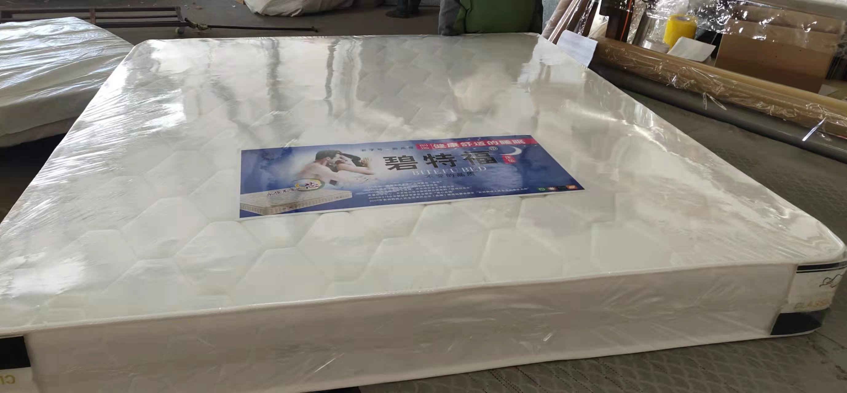 我廠還有自己獨(dú)立的床墊品牌,比特福,美迪麗,生產(chǎn)13種床墊,特尺加工。同時(shí)為了方便于每個(gè)客戶的需求,我們還代銷(xiāo)床墊輔料,裥花面料,各式花樣。